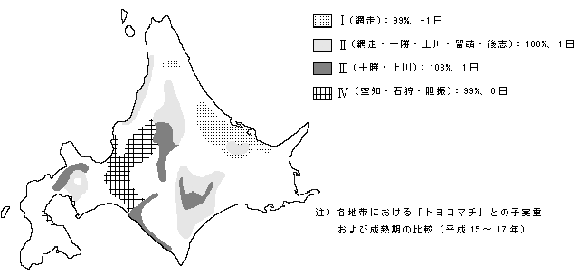 北海道の大豆栽培地帯区分Ⅰ、Ⅱ、Ⅲ、Ⅳの地域およびこれに準ずる地帯。