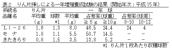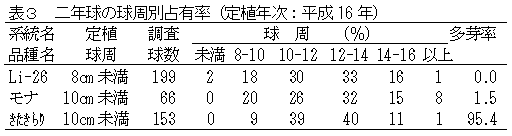 (2) 球周12cm以上の球根は花蕾数がやや多くなるので、作期や市場性を考慮して使用する。