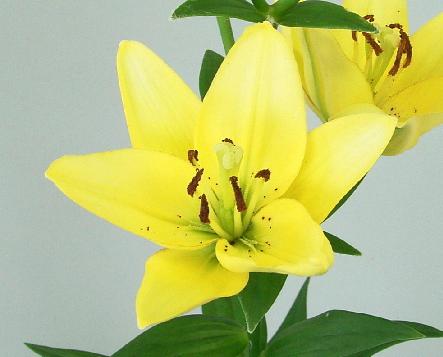 特徴:澄んだレモン色で斑点の少ない良花色小輪系統。花弁があまり開かないカップ状の花形で、一年球を切花生産に利用できる。