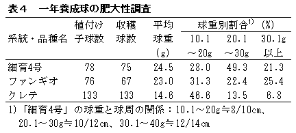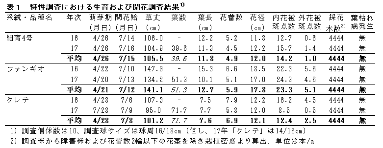 1)秋植え、無加温ビニールハウス栽培での成績であり、抑制栽培および促成栽培での調査は行っていない。