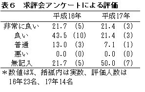 平成16年および17年の二ヵ年間、特性調査圃場において求評会を開催し、外部の参加者(生産者、流通・小売、種苗販売、地域農業センター、農協、ゆり育種家等)からのアンケートによる本系統に対する評価を得た。本系統の鮮赤紫色、カップ咲きの特性が比較的高い評価を受け、総合評価において「非常に良い」と「良い」を合計した割合は、平成16年65.2%、平成17年42.9%であった。