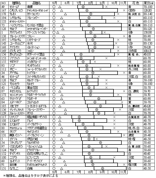 3)本成績は景観、花壇用等、直はん栽培で花きを栽培する場面での参考資料として