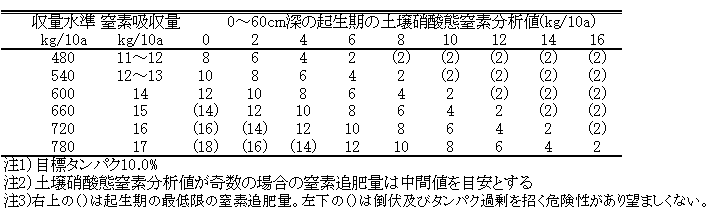 3)収量水準の設定においては、適用圃場における通常年の収量およびタンパクの実績を参