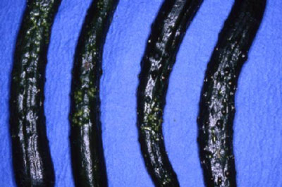 平成15年8月、三笠市のハウス栽培きゅうりに、果実に白色陥没の発生が認められた。