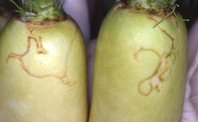 大根根部のアシグロハモグリバエ被害