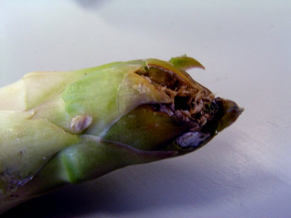 平成17年5月中旬に、七飯町のハウス立茎栽培のアスパラガスで、出芽直後に伸長を停止して先端部から腐っていく被害が発生した。生長点付近を調査したところ食害が認められ、ケナガコナダニTyrophagus putrescentiae (Schrank)が多数検出された。生長点付近を食害されたために生育できなかったものと考えられた。このほ場では、表面に稲わらを敷き詰めていて、これに発生したケナガコナダニがアスパラガスの出芽時に移動・加害したものと推察された。