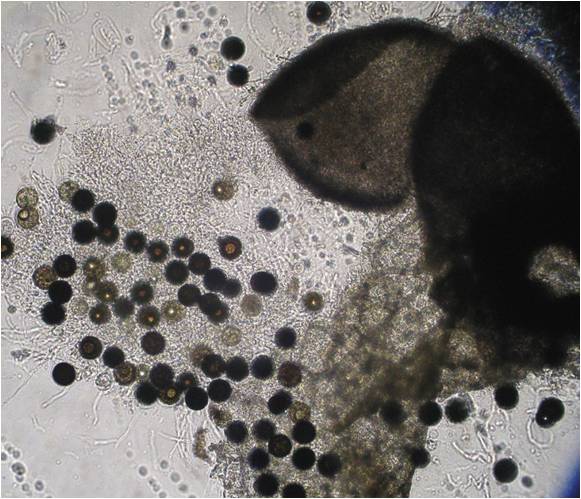 平成20年9月、上川支庁管内で収穫期を迎えたハウス抑制作型メロン(品種「R113」)の株にしおれや黄化症状がみられ、一部に枯死する株もみられた。発症株については、萎凋性病害で確認される維管束の褐変等は観察されなかったが、根を掘り起こしてみたところ、細根に0.3〜0.5mmの微小な黒点が埋没している症状がみられ、黒点部分を検鏡したところ、中から黒褐色の子のう胞子を一つだけ内包した子のうが多数放出された。分離された糸状菌の同定を行ったところ本病はMonosporascus cannonballus によるメロン黒点根腐病であると診断された。