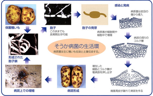 | 1.病原菌は主に保菌種いもや汚染土壌で圃場に持ち込まれる。