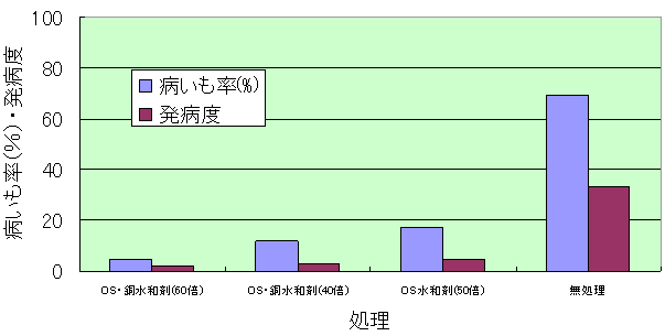 注)図中、OS:オキシテトラサイクリン・ストレプトマイシン水和剤。 指数3程度の罹病種いも使用。 |