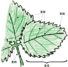 葉身:葉の主要部で、普通、扁平に広がり、葉肉と葉脈とから成るもの。