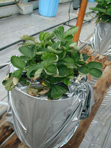 | 写真29 「カレイニャ」では葉先枯れ症状などは少ない。 中〜新葉の葉脈間にクロロシスを生じる。 (12週目 +N7週目 カレイニャ)  |