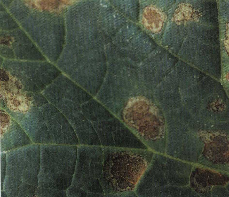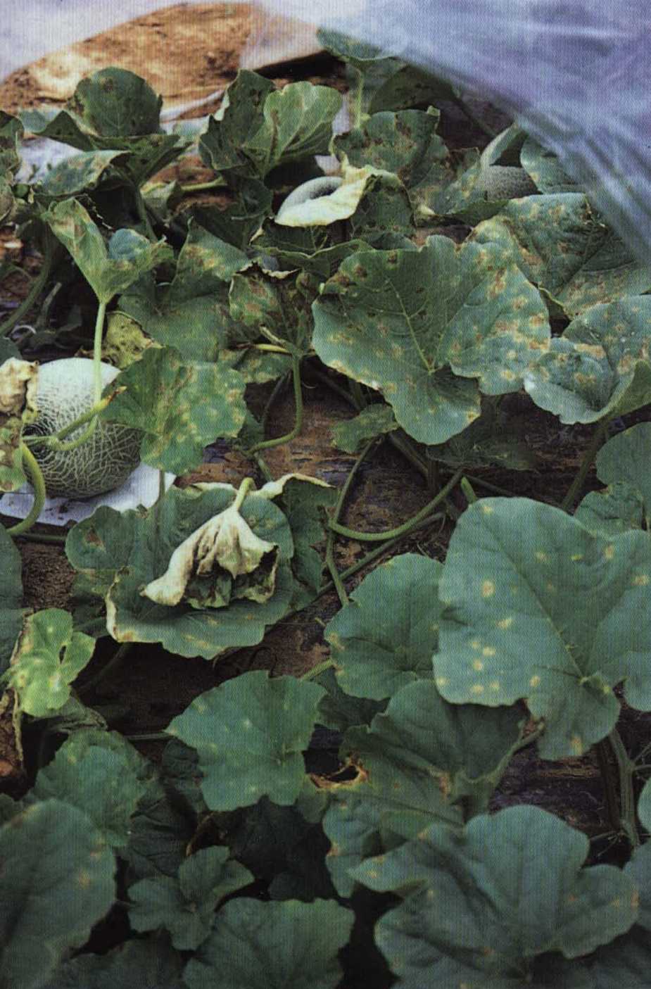1)露地栽培では、降雨後などに高温・多湿になり易いトンネル内にある葉から発病し易い(写真1)。