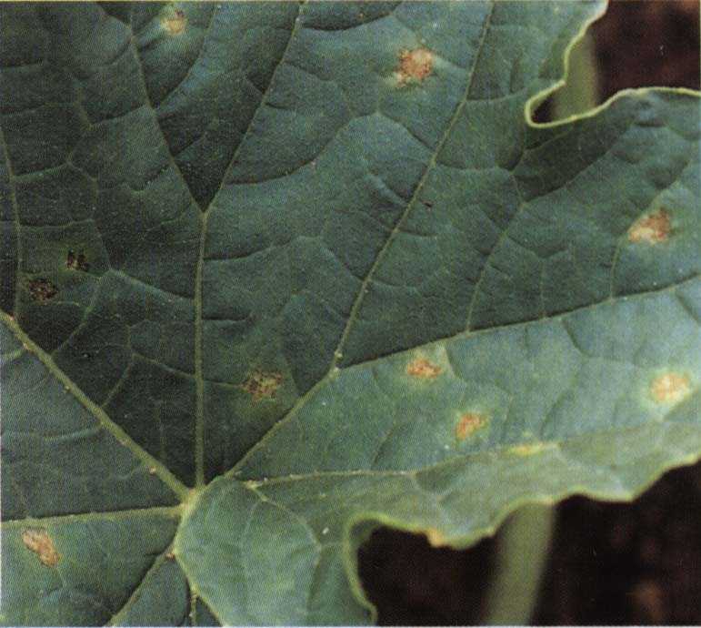 4)キュウリにおける病斑のように、葉脈に囲まれた不正多角形になることもある(写真4) 。