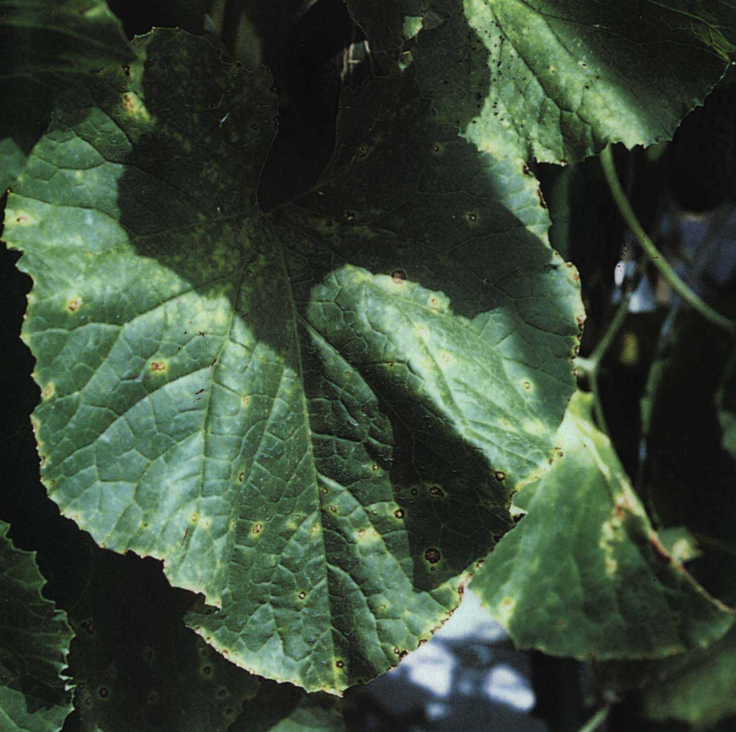 3)本病害の病原ウィルスはメロンえそ斑点ウィルス(MNSV:Melon necrotic spot virus)であり、主に土壌中の古生菌類ネコブカビ目の藻菌類であるOlpidium cucurbitacearumによって媒介され、メロンに感染する。