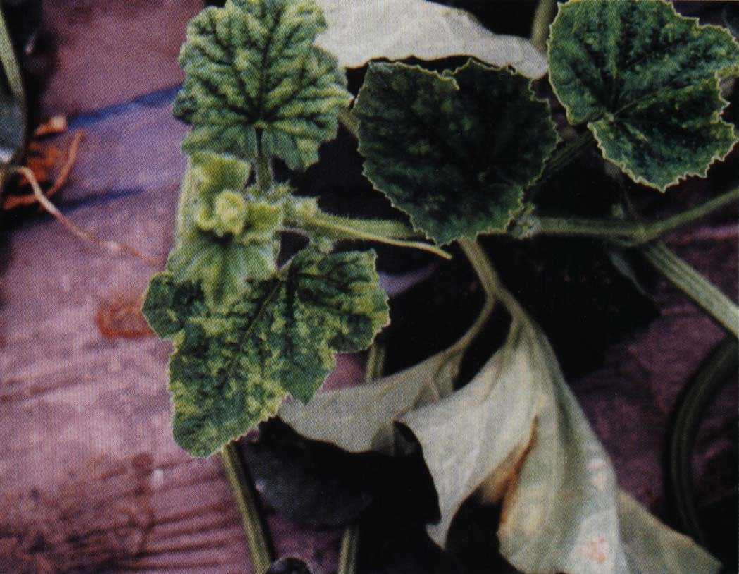 1)CMV感染植物が第一次伝染源となり、主にワタアブラムシにより媒介されメロンに感染することから、メロンのCMVはワタアブラムシが多い年には多発する。また、CMVは汁液感染するので栽培管理中に接触により発病株から感染することがある。種子伝染、土壌伝染はしない。