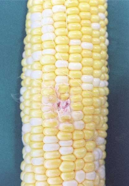 写真29 雌穂中央部に穂腐れが観察される。(9葉期 +N6.5週目)