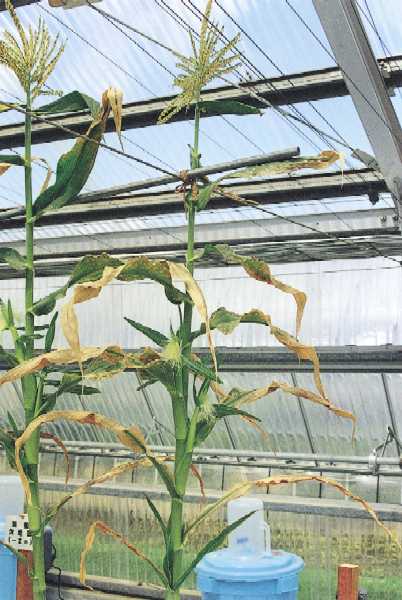 穂柄側に列状の着粒不良が観察される。(9葉期 −Zn6.5週目)