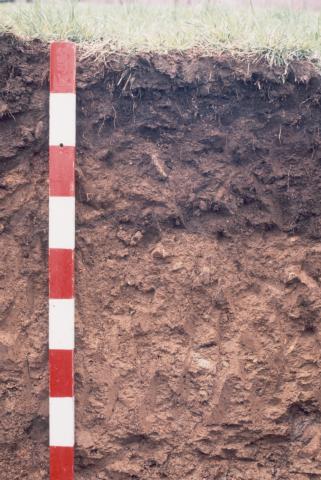 名前の通り森林地帯(丘陵、台地)の傾斜地に普通に見られる壌質の黄褐色の土壌です。一般に褐色森林土は排水は良く、丘陵では礫質のものが多く、台地では粘質のものが多いです。この地域では畑地、草地として利用されています。