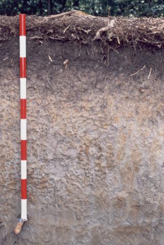 空知川右岸の台地上にある、粘質で、堅く、排水不良な土壌で、重粘土の代表的なものです。物理性は不良で、沖積土壌に比べると古い土壌のため、養分的にも劣ります。改良策としては暗渠排水が基本です。この地域では畑地、水田で、一部は草地に利用されています。