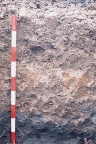 14-1と同じ細粒質のグライ土ですが、グライ層の出現する位置が深いことから"強"が取れて普通の"グライ土"に分類されます。強グライ土と同様に細粒質のものが多く、空知、上川管内に多く分布しています。改良策は暗渠整備が基本です。この地域では、水田として利用されています。