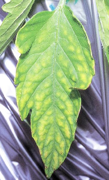 1.カリウム、カルシウムなどの塩基類が過剰に蓄積しているハウスでは、土壌中にマグネシウムが十分あっても、これら塩基のアンバランスによりマグネシウム吸収が阻害され、マグネシウム欠乏の発生が見られる。