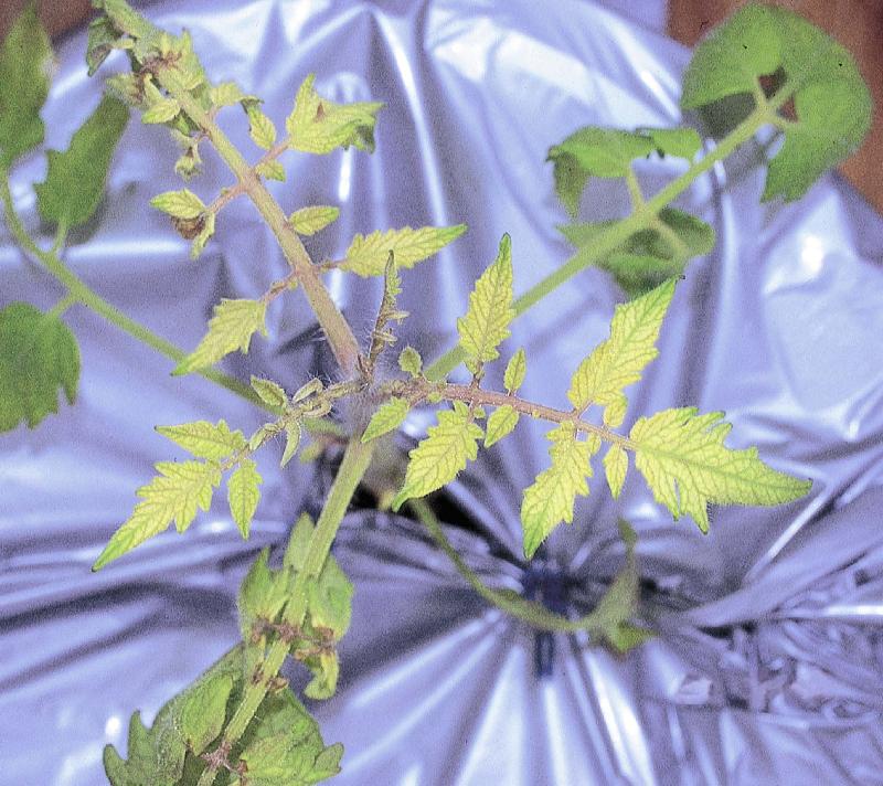 2.亜鉛過剰症状は、多くの作物で生育抑制を示すが、外見上の症状を示さないことが多く、トマトの場合も同様に判然としない。単純な鉄欠乏症状と亜鉛過剰により誘発された鉄欠乏症状の区別は、肉眼観察のみでは困難である。