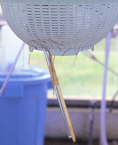 2.症状が進行すると、これらの症状は壊死斑へと変化し葉全面へ広がり、全ての葉の生長が停止する(写真64)。