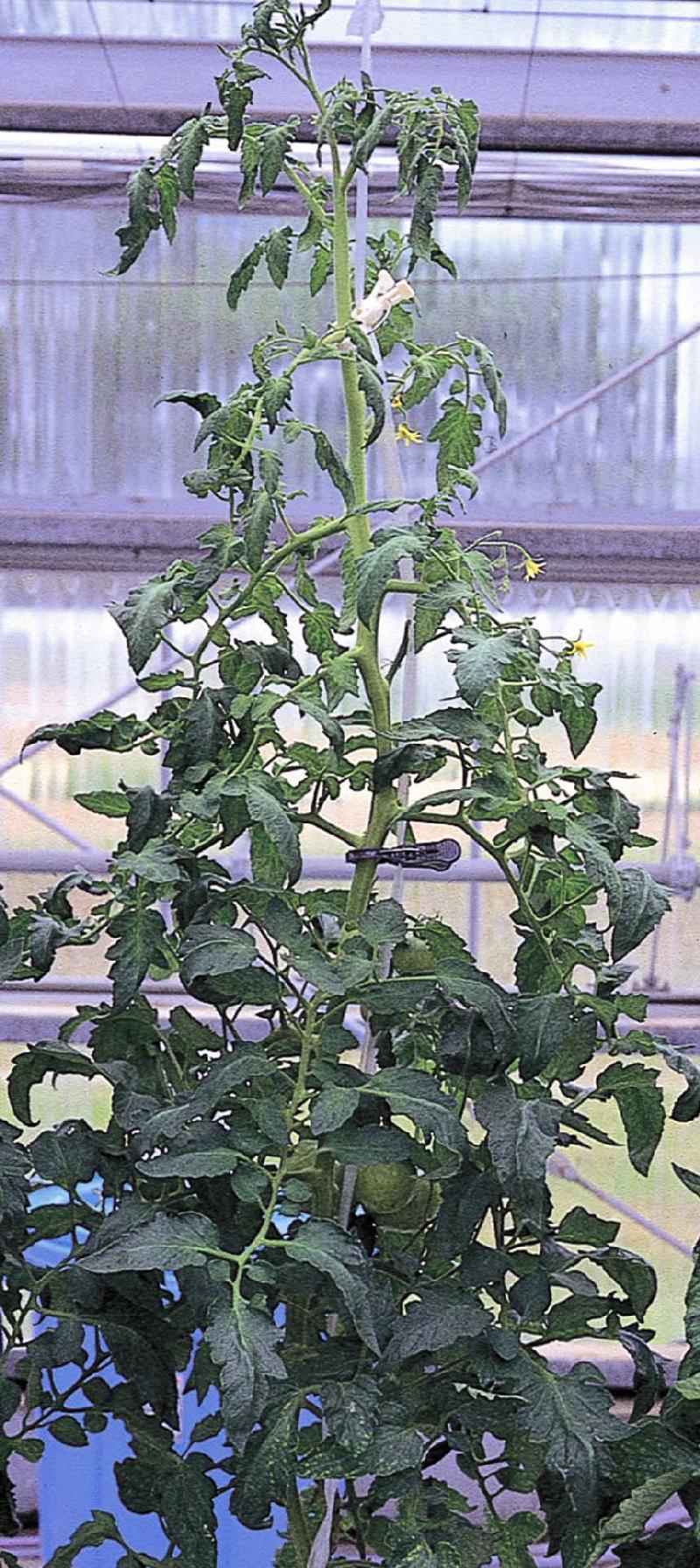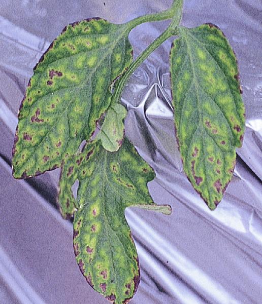 中下位葉の葉脈間に不鮮明な黄化黄化症状が発生する。