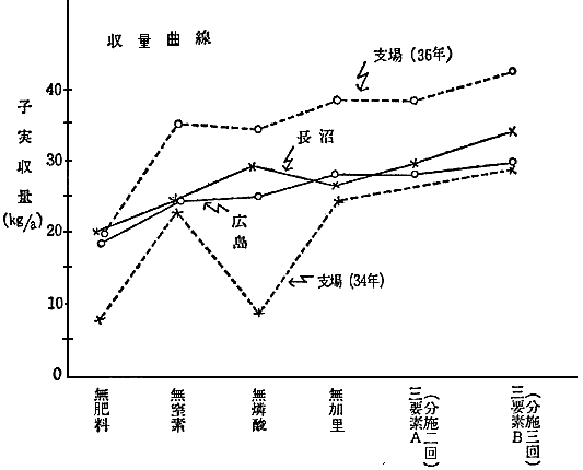 すなわち、三要素の中で窒素の肥が大で、燐酸これに次ぎ、加里の肥効も多少認められた。
