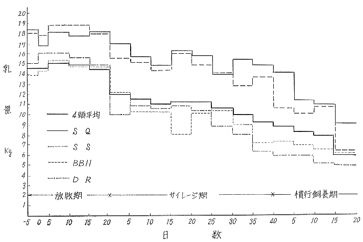 しかし、従来から産乳量の向上には濃厚飼料の補給は不可欠の条件になっており、これは真理であるが、生理的または催乳的にその補給が重要でも経済的に有利になるとは限らない。そこで本試験では各レベルの濃厚飼料の補給が産乳量、乳質、健康度、経済性に及ぼす影響を調査し、サイレージを主体とした飼養法の場合の経済的な給与基準を確立すべく実施したものである。