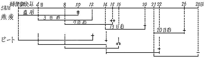 | 作物処理 | 直後播種 | 3日後 | 7日後 | 13日後 | 20日後 |