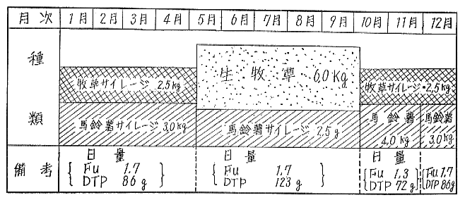 (2) 飼料基盤の強化を図るため、能うる限り草地化をすすめ且、地力の増進と労働の合理化を主眼とした輪作方式を策定し、土地利用の集約化を計る。