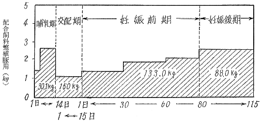 8)養豚部門は(B)農家に併置し、昭和36年にデンマーク式豚舎を1棟60m2新設したが、従来の副業的な養豚技術から部門としての養豚技術を考察するとき、本経営試験では繁殖豚数と豚房数との関係、繁殖豚および肥育豚の省略労働を加味した飼料給与方式、仔豚育成等に監視問題提起にとどまった。