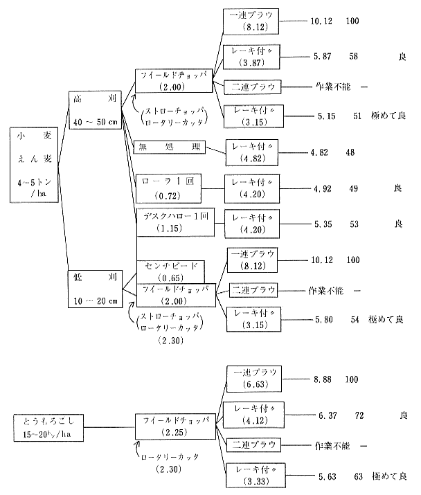 | 作物 | 圃場条件 | 前処理 | 耕起 | 総作業時間 (時/ha) |