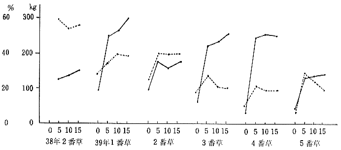 | 昭和39年 | 1番草 | 4.71 | 4.71 | 4.93 | 4.93 | 4.67 | 4.79 | 4.43 | 4.69 | 5.24 | 1.93 |