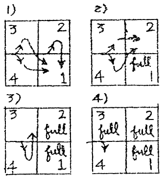 4) 図1に示すごとく各ビンで1次乾燥を行い、その後他のビンに移動し貯蔵を行う。上層と下層の差は若干あるが(図2)移動によりかくはんされ、晴天時に通風すると、長期貯蔵は可能である。
