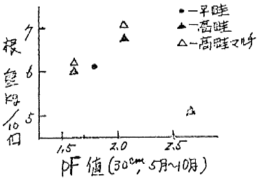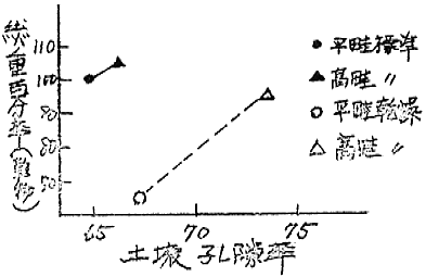 (1) 土壌水分の管理は排水を十分にして、下層60cmまでの水分をpF2.0附近に保持するようにし、pF1.5以下にならないように留意する。