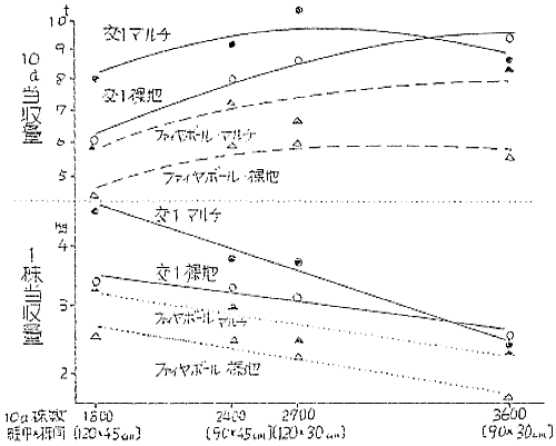 育苗日数・床土・鉢の種類を異にした時の収量比較(中央農試)