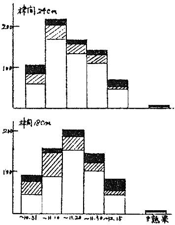 | 44年 | 14 | ①6.16 | 8. 6 | 4条株間18と24cm | 9月22日〜12月16日 |