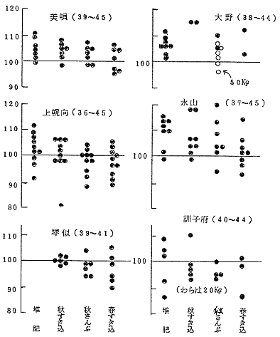 4. 春すき込みを行ったものは平均的に見て増収の効果は望めず、危険性の多い方法であることを認めた。