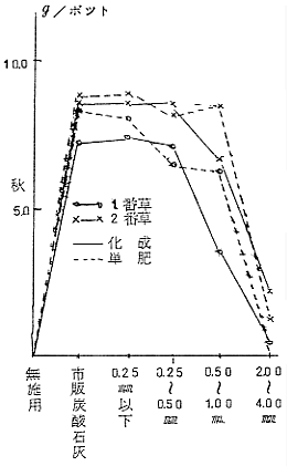 | 5. 粗砕炭酸石灰 培量 | 34.5 | 62.3 | 46.3 | 34.1 | 38.2 | 21.2 | 80 | 86 | 89 | 114 | 78 | 63 |