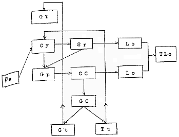| コンバイン脱穀、選別、分離課程 Fe. 供給部 Lo. 損失 Cy. 脱穀部 TLo. 総損失 Sr. 分離部 Gp. 穀粒受 測定方法 CC. 1次選別部 GC. 2 〃 0→ 20m→ 25m→ 30m→35m Gt. 1番口穀粒受 助走 損失 Gt.Tt. Gt.Tt. Tt. 2 〃 測定 開放 測定 Gt. グレンタンク |