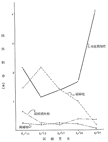 未脱飛散破砕および頭部の損失と莢雑物の割合