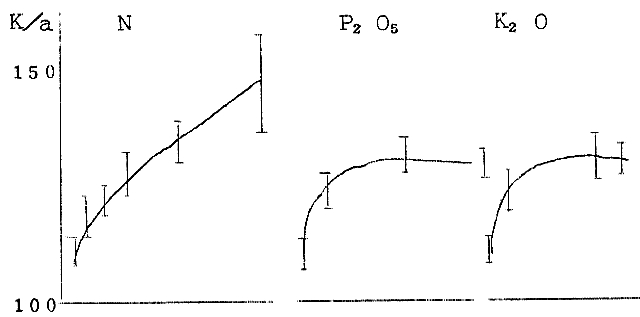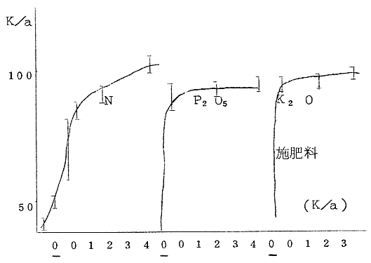 2) イネ科草種においてはN施用量に直線的反応増収する。P.Kについては前記と同様であった。