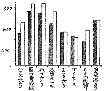1) 主枝と側枝の節成性との間には抑制栽培同様高い正の相関が認められた。更に節成性は促成と抑制との間でも相関が高く、一定の収量を確保するためにはある程度生枝節成性の高いことが必要である。