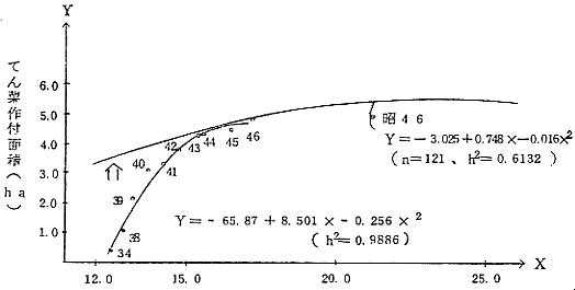 大規模経営のてん菜作付停滞は、てん菜の労働収益が高いために、小規模経営で作付拡大が図られ、生産組織を通じて、大規模経営の労働力の組織的利用がむずかしくなってきたことと、生産組織の構成農家数が多いために、機械の稼働効率と労働能率との均衡がくずれ労働多投的な様相を示していることによる。