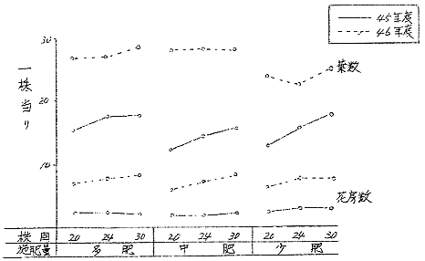 | 施肥量 | 株間 | 45年度 | 46年度 | ||||||