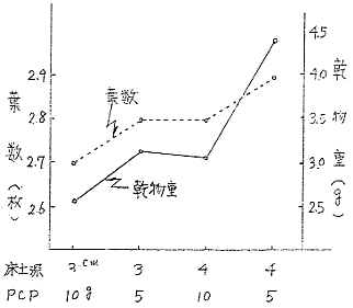 (2) 昭和46年にPCP処理について5gと10g/m2処理、5gでは置床の鎮圧が不十分な場合は貫通根が出ることがある。10gでは5gより葉数、乾物重がやや劣ることがある。しかし箱育苗より優り、5〜10g/m2で使用可能である。