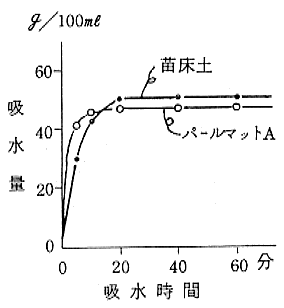 2) 育苗時におけるパ−ルマットの灌水量1.2L(箱当り)は多いので、粗孔隙量、吸収性よりみて0.8L位(最大容水量の40%相当)で充分である。