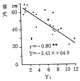 1) にんにくの生育形質の変異と収量の相関(生育調査46.8.10・21点調査)